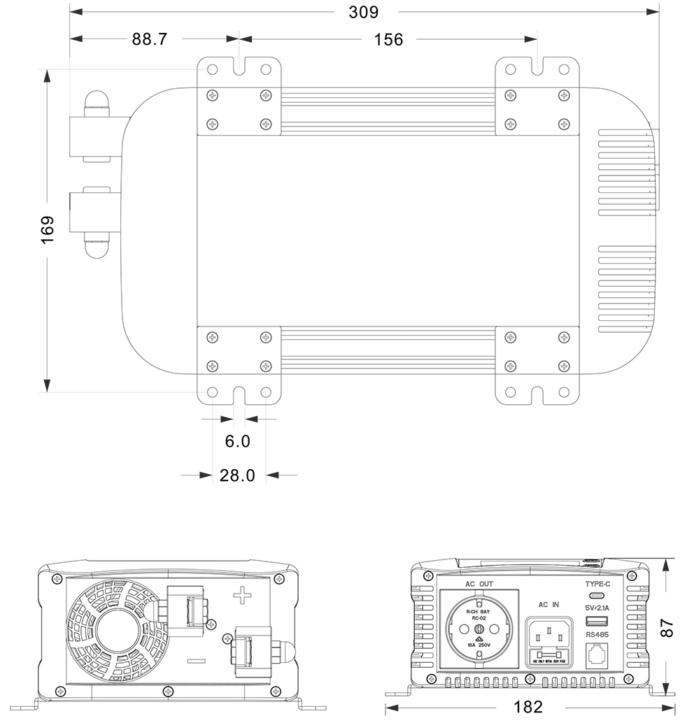 যান্ত্রিক অঙ্কন:(309x182x87 মিমি)