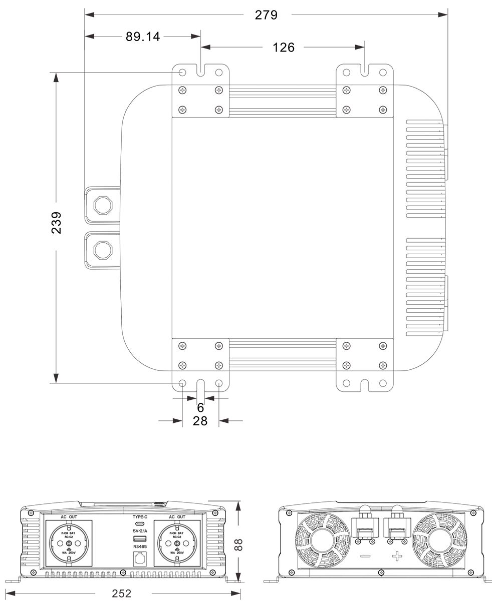যান্ত্রিক অঙ্কন:(279x252x88mm)