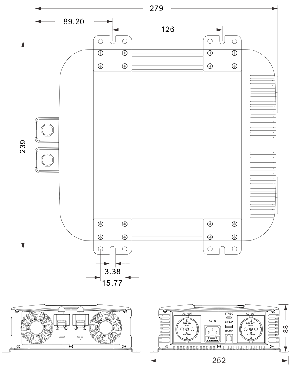 যান্ত্রিক অঙ্কন:(279x252x88 মিমি)