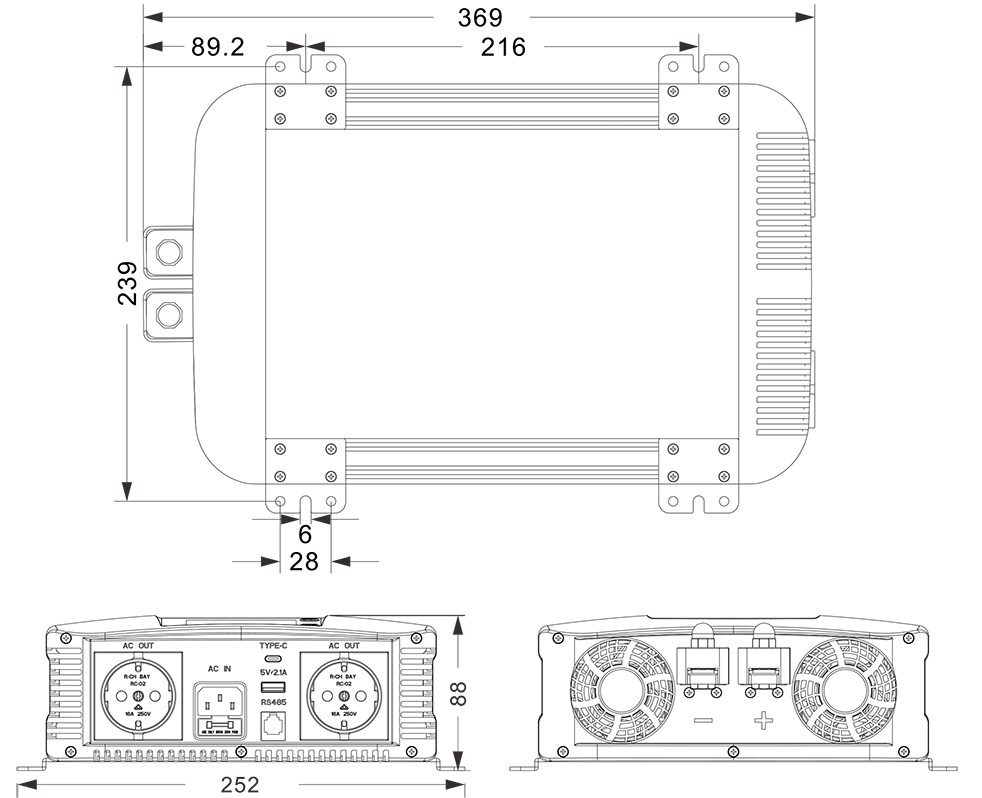 যান্ত্রিক অঙ্কন:(369x252x88mm)