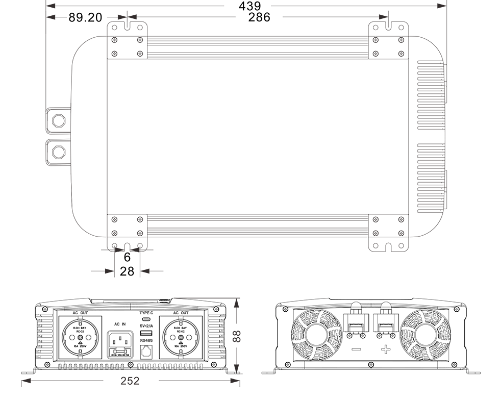 যান্ত্রিক অঙ্কন:(439x252x88mm)